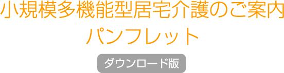 皆様からご要望の多くあった小規模多機能型居宅介護のパンフレット(一般向け)が完成いたしました。小規模多機能型居宅介護の内容を図柄を多く取り入れ、より多くの方々にご理解いただけるよう作成いたしました。 下記2種類の方法でダウンロードしてご利用いただけます。 ■Version1 A4両面印刷左2か所ホチキスどめバージョン ■Version2 A3両面中とじホチキスどめバージョン